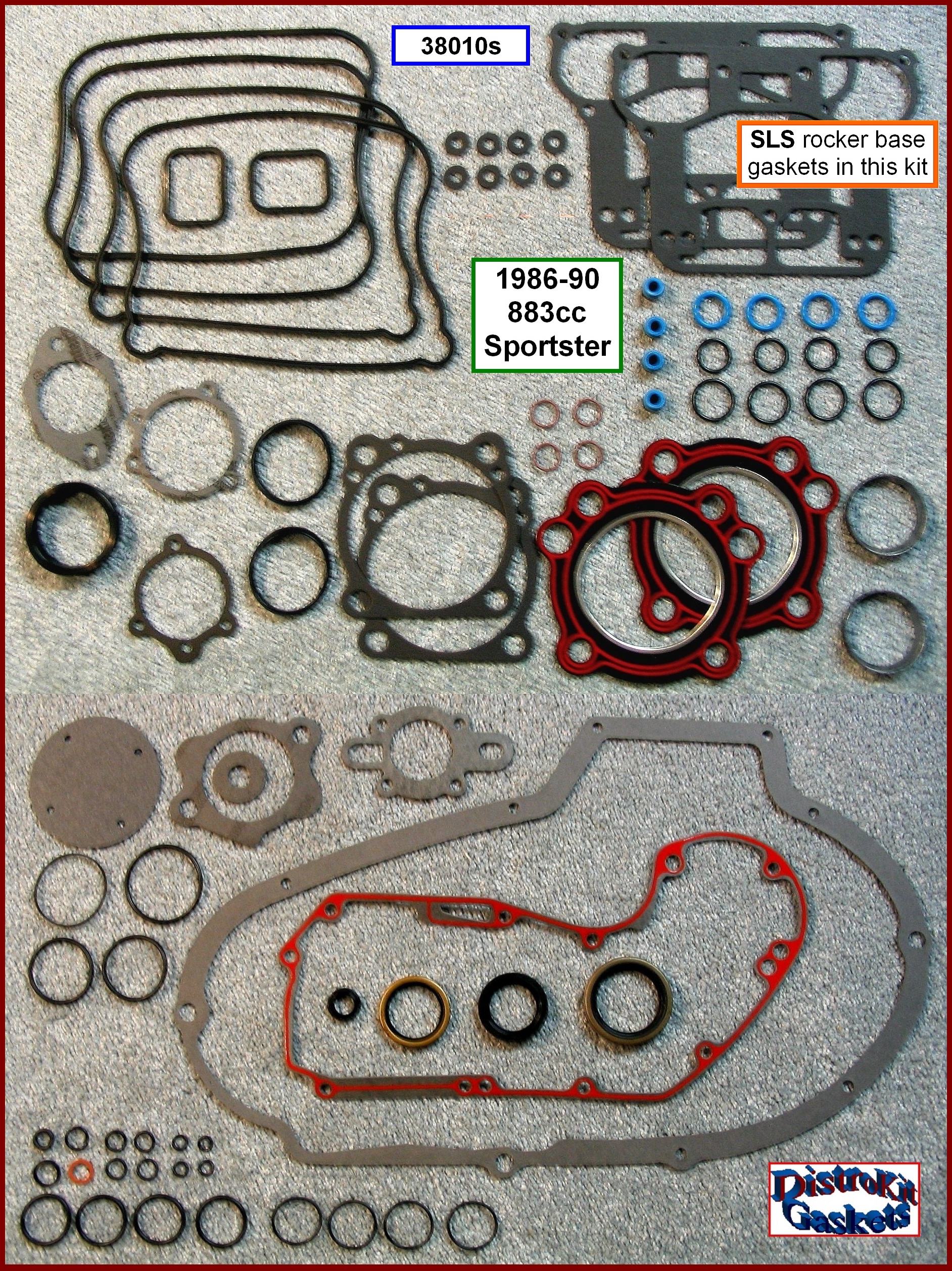 | 38010s | 17026-86 | Kit, Engine 883cc 1sb head gaskets, Rubber, SLS rocker base, 86-90 Sportster | 55.98 | 38010s-Dk |