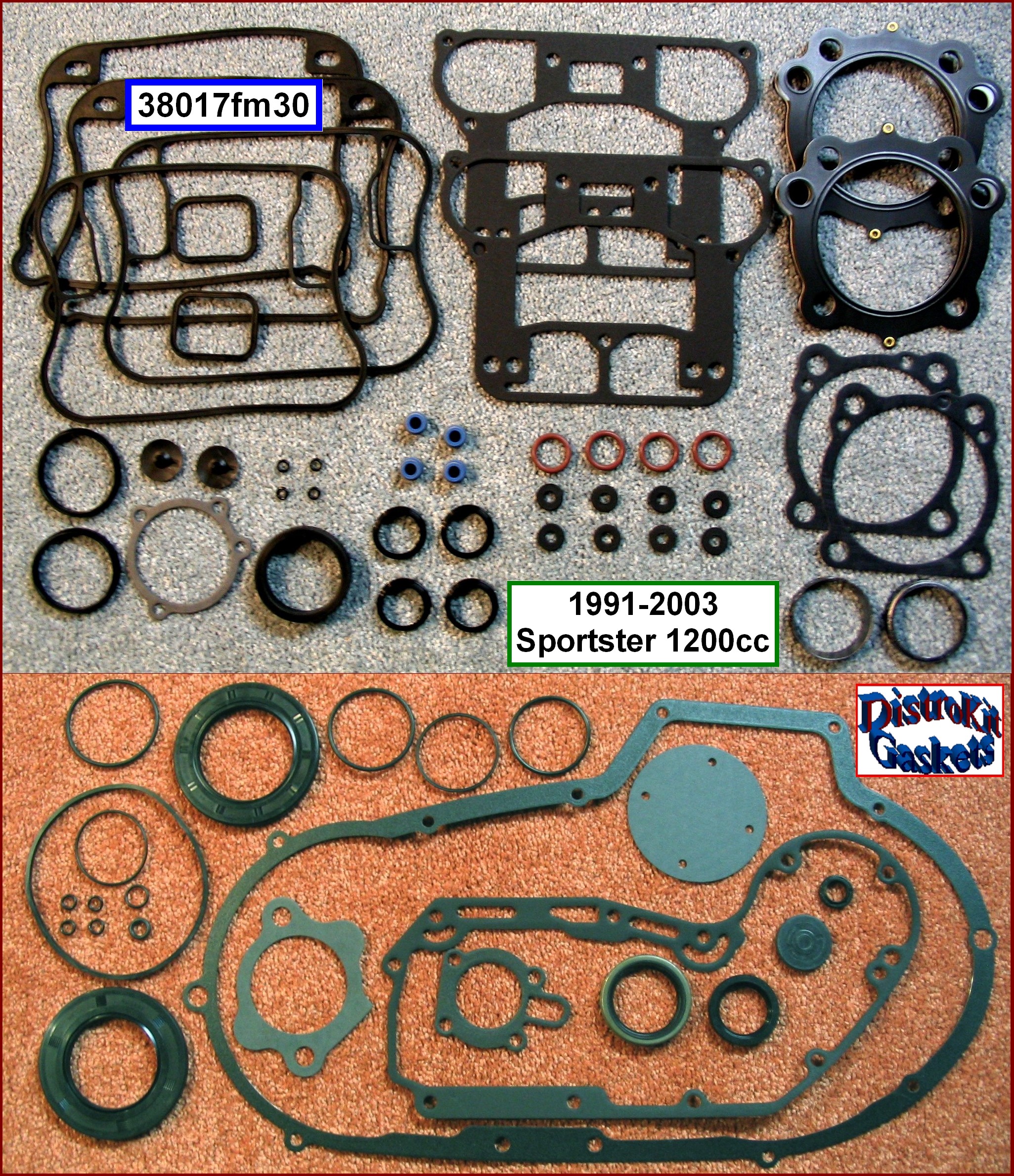 | 38017fm30 | 17026-91A | Kit, Engine, 1200cc, MLS 0.030" head gaskets, foamet primary & cam cover, 1-pc foamet rocker base, 1991-2003 Sportster | 89.39 | 38017fm30-Dk |