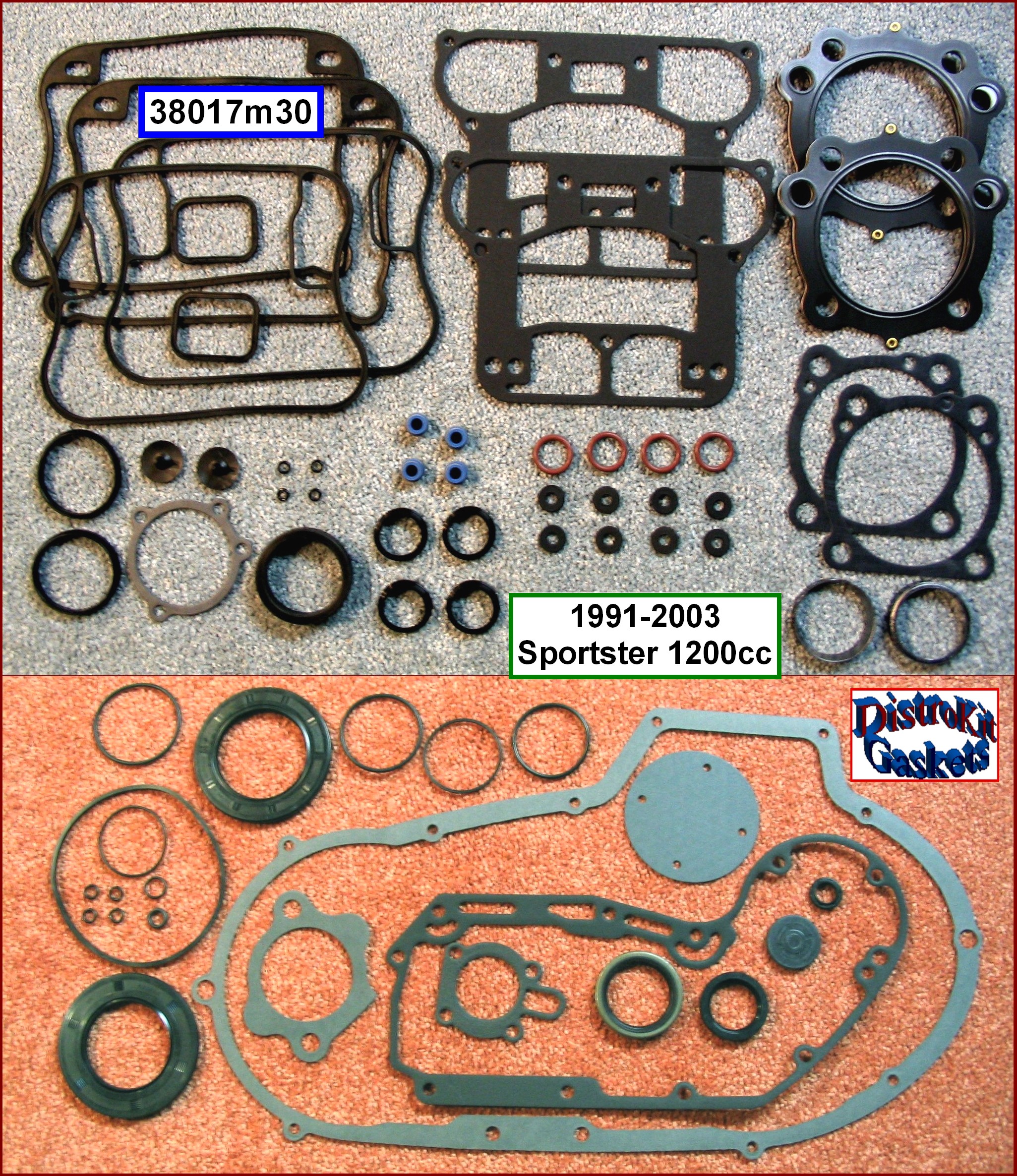 | 38017m30 | 17026-91A | Kit, Engine, 1200cc, MLS 0.030" head gaskets, foamet cam cover, 1-pc foamet rocker base, 1991-2003 Sportster | 80.82 | 38017m30-Dk |