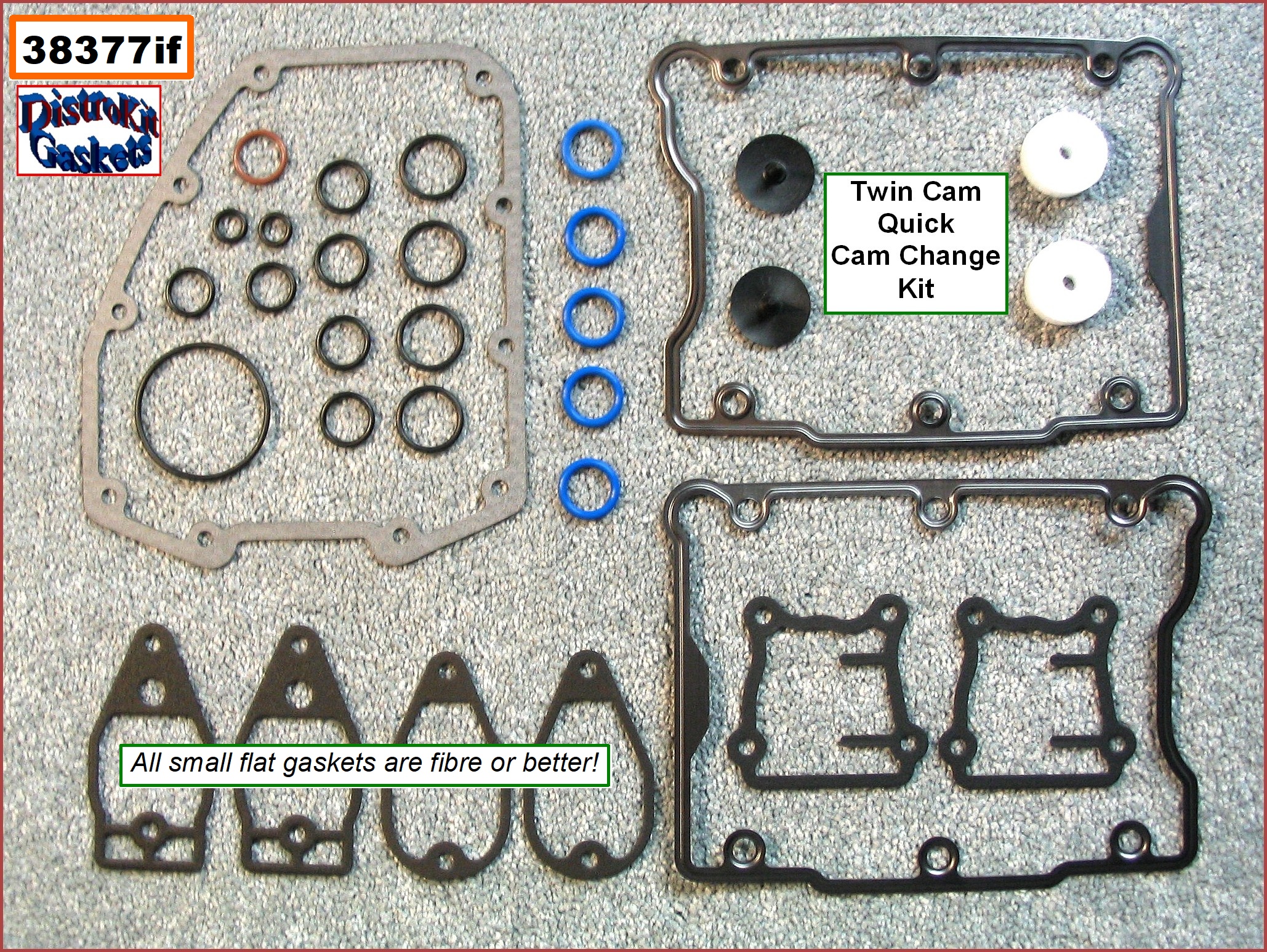 | 38377 | 25244-99 | Kit, Cam Change, fibre cam cover, SLS rocker, fm flat gaskets, 99-10 T/C Not for 2011-up, or any T/C w/stamped steel breather ass'y | 29.48 | 38377-Dk |